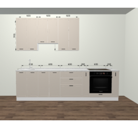 Размер кухонного гарнитура: Ширина 2800 мм. Высота 2336 мм. Глубина 600 мм. (с учетом столешницы)