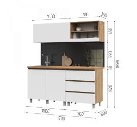 [name] => Кухонный гарнитур Пасадена 2,0 дуб крафт золотой / белый бриллиант / ржавый камень
